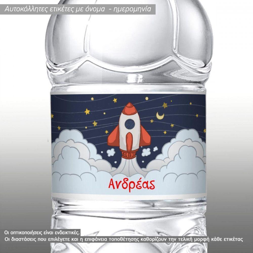 Αυτοκόλλητη ετικέτα πύραυλος ζωγραφισμένος, με όνομα και ημερομηνία