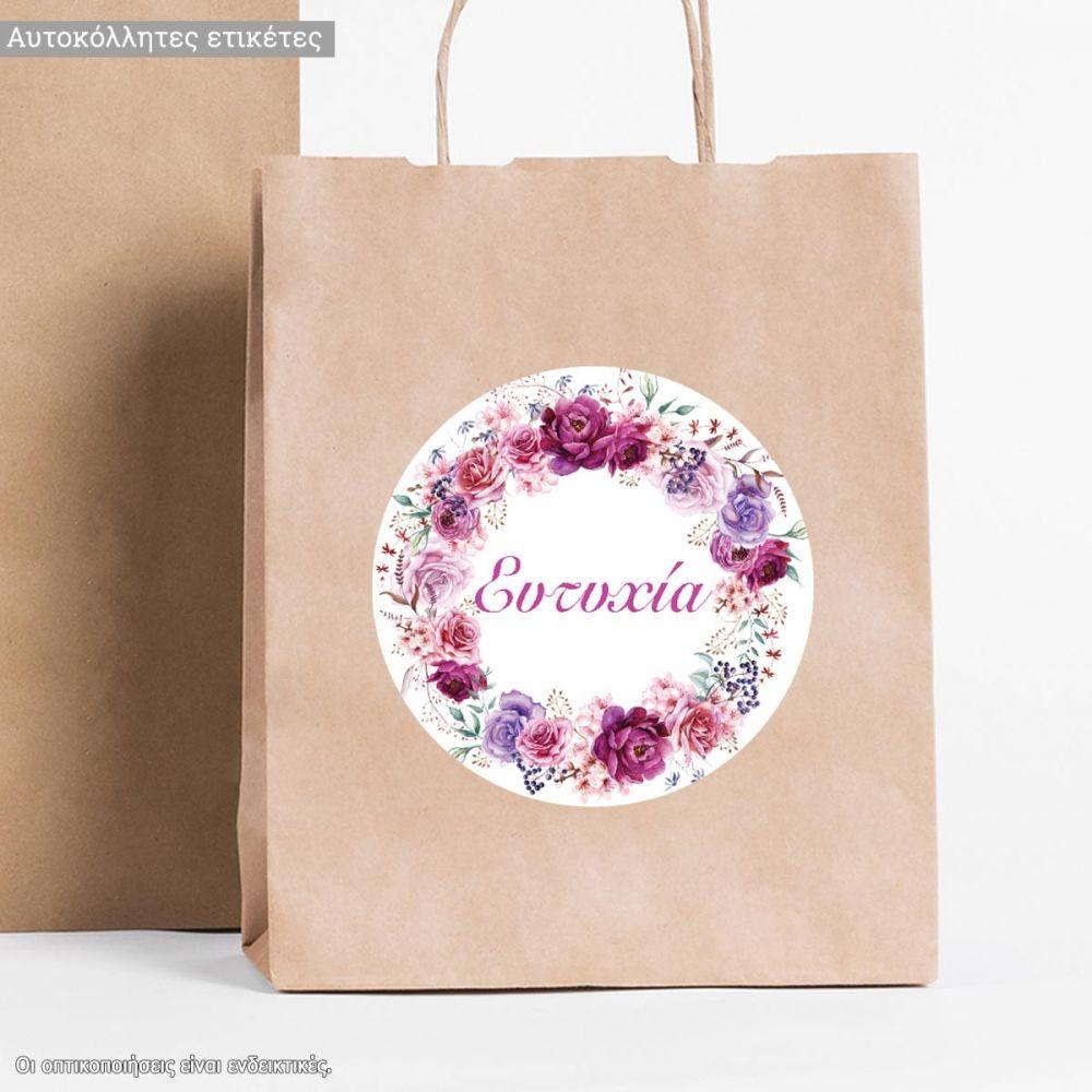 Αυτοκόλλητη ετικέτα Στεφανάκι λουλουδιών με όνομα και ημερομηνία