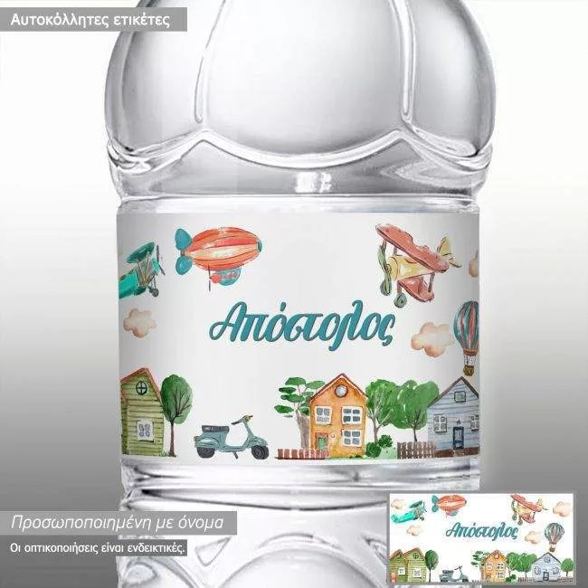Αυτοκόλλητη ετικέτα Αεροπλάνα, βέσπα, σπίτια ταξίδι στον κόσμο, προσωποποιημένη