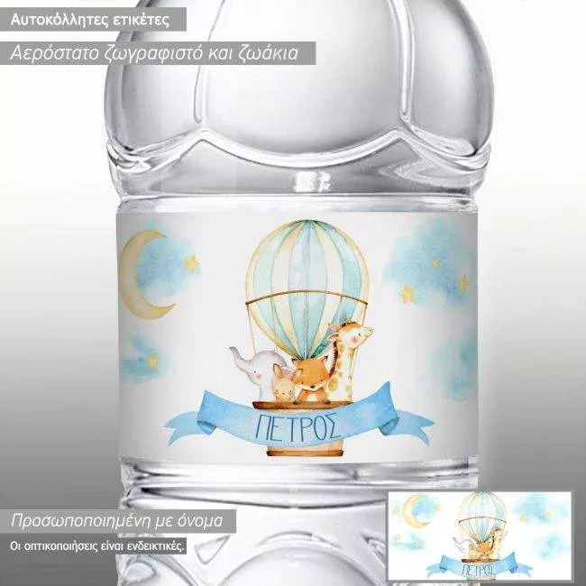 Αυτοκόλλητη ετικέτα Αερόστατο και ζωάκια ζωγραφιστά art I με όνομα