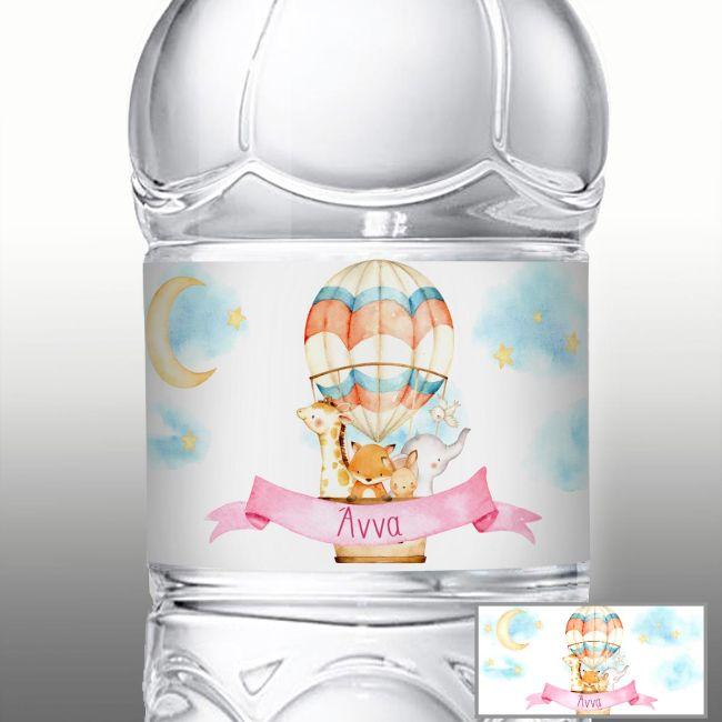 Αυτοκόλλητη ετικέτα Αερόστατο και ζωάκια ζωγραφιστά art II με όνομα
