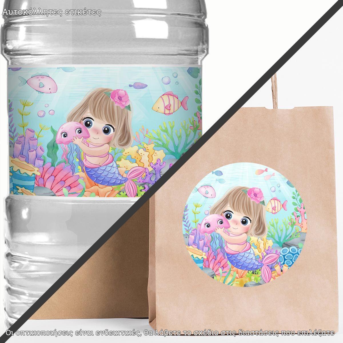 Αυτοκόλλητη ετικέτα Μωρό γοργόνα με μέδουσα