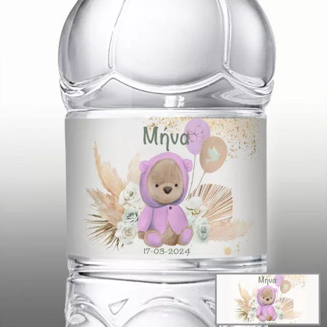 Αυτοκόλλητη ετικέτα, αρκουδάκι boho ροζ