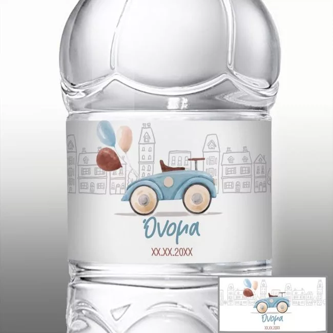 Αυτοκόλλητη ετικέτα Αυτοκίνητο στην πόλη, με όνομα και ημερομηνία