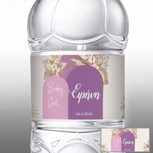 Αυτοκόλλητη ετικέτα Baby girl boho, με όνομα και ημερομηνία