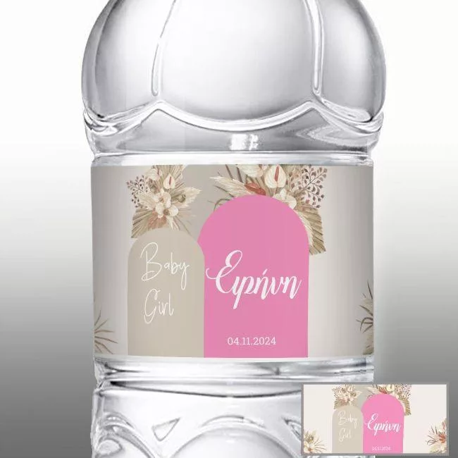Αυτοκόλλητη ετικέτα Baby girl boho pink beige