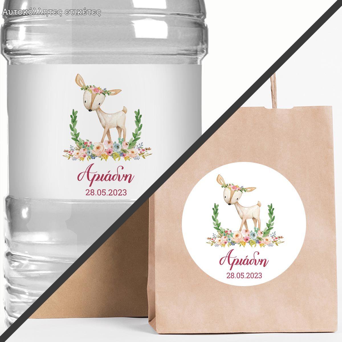 Αυτοκόλλητη ετικέτα Ελαφάκι με λουλούδια ζωγραφιστό