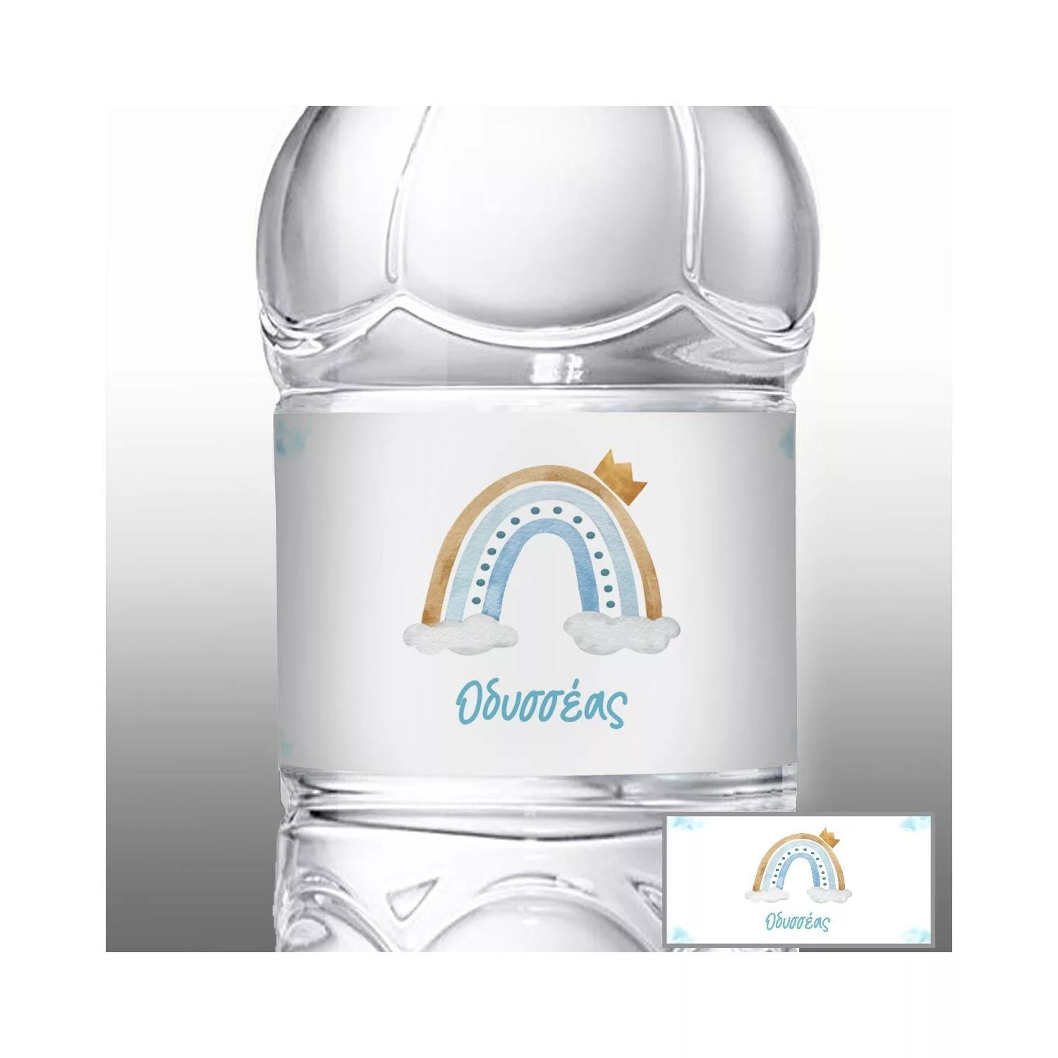 Αυτοκόλλητη ετικέτα, Ουράνιο τόξο με συννεφάκια και κορόνα boy
