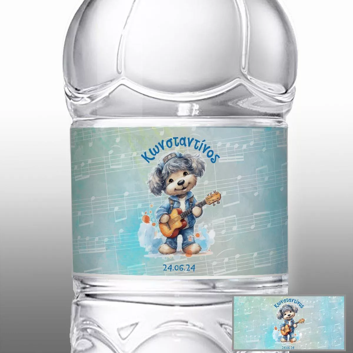 Αυτοκόλλητη ετικέτα, σκυλάκι με κιθάρα