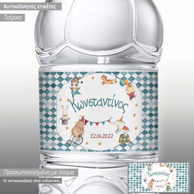 Αυτοκόλλητη ετικέτα Τσίρκο, με όνομα και ημερομηνία