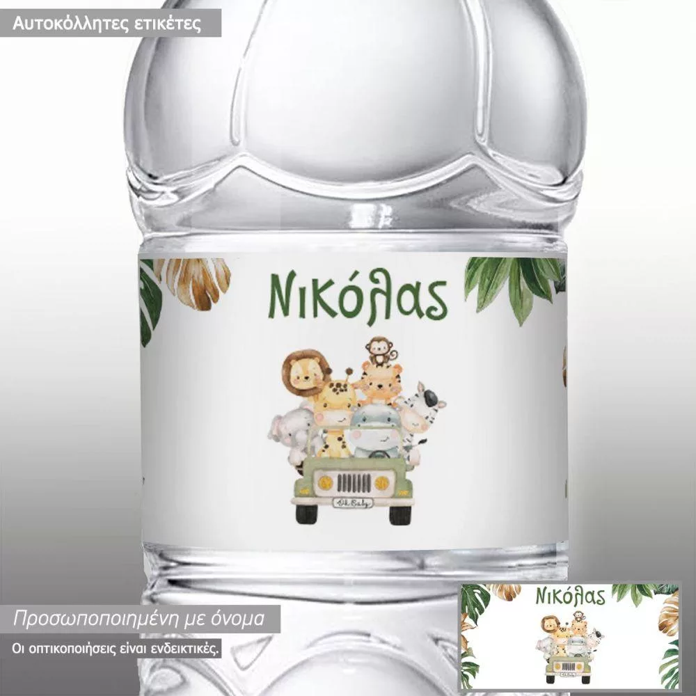 Αυτοκόλλητη ετικέτα Ζωάκια σε τζιπάκι, προσωποποιημένη