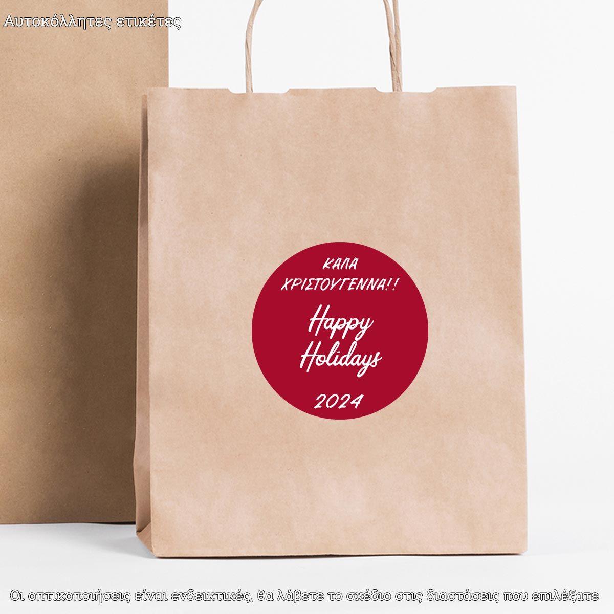 Αυτοκόλλητη Χριστουγεννιάτικη ετικέτα, Happy Holidays art1