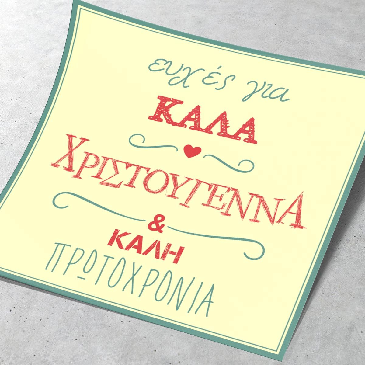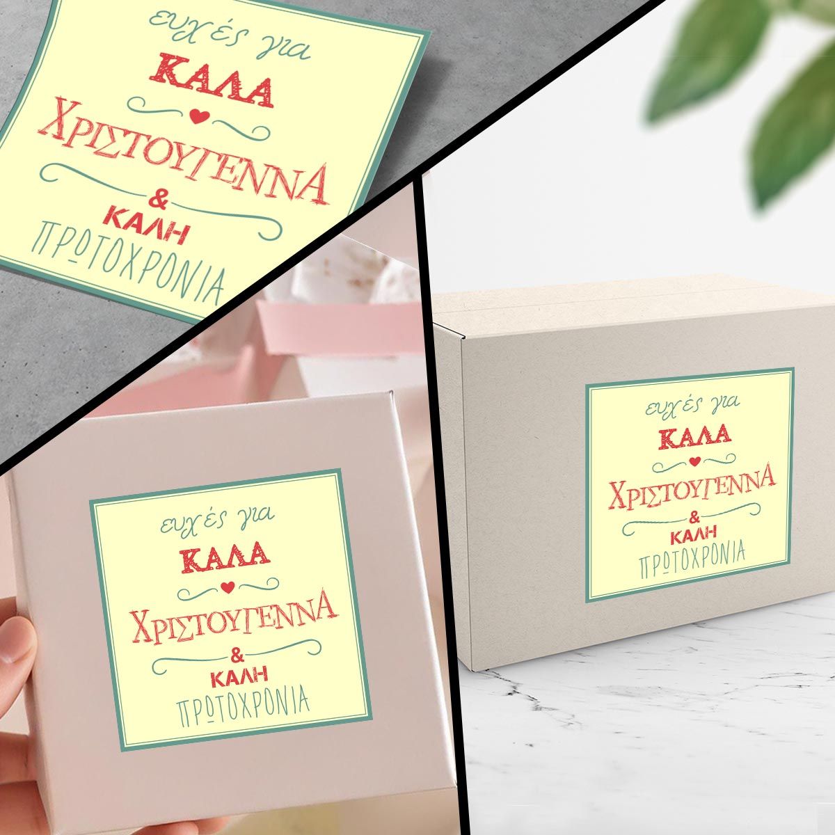 Αυτοκόλλητη Χριστουγεννιάτικη ετικέτα, τετράγωνη, γραμμένες ευχές
