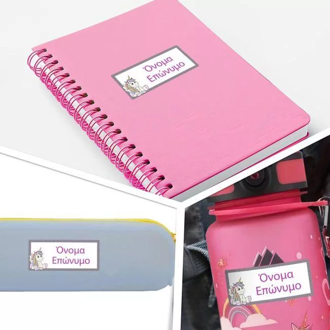 Αυτοκόλλητες ετικέτες για σχολείο Χαριτωμένος Μονόκερος, προσωποποιημένες