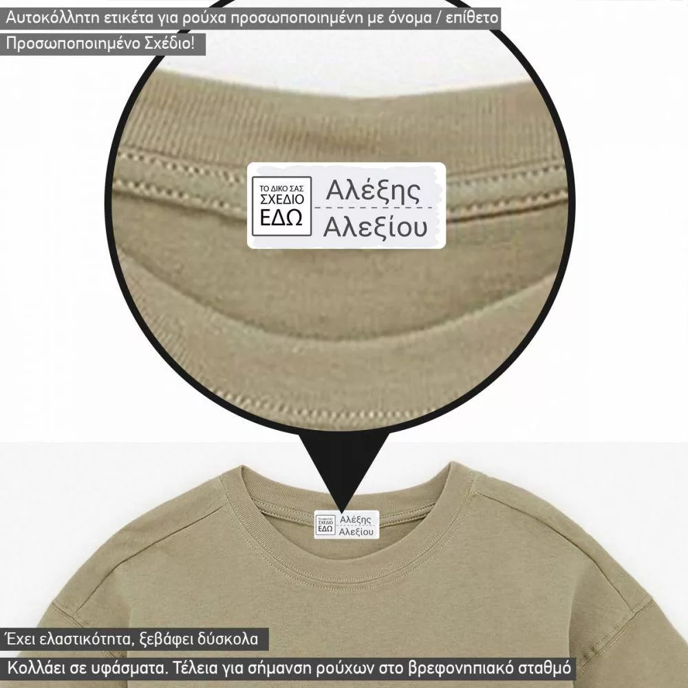 Αυτοκόλλητες ετικέτες σιδερότυπες για ύφασμα, μπλουζάκια, ρούχα.