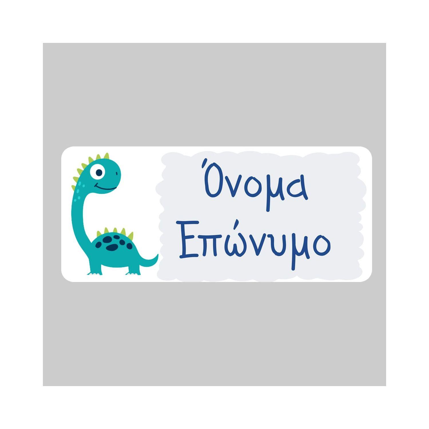 Αυτοκόλλητες ετικέτες για σχολείο, Δεινόσαυρος τιρκουάζ, προσωποποιημένες