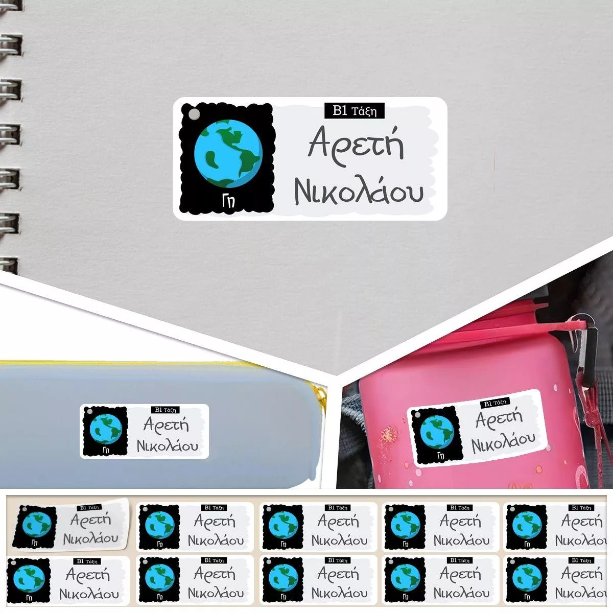 Αυτοκόλλητες ετικέτες για τετράδια, τσάντες, οποιαδήποτε λεία καθαρή επιφάνεια.