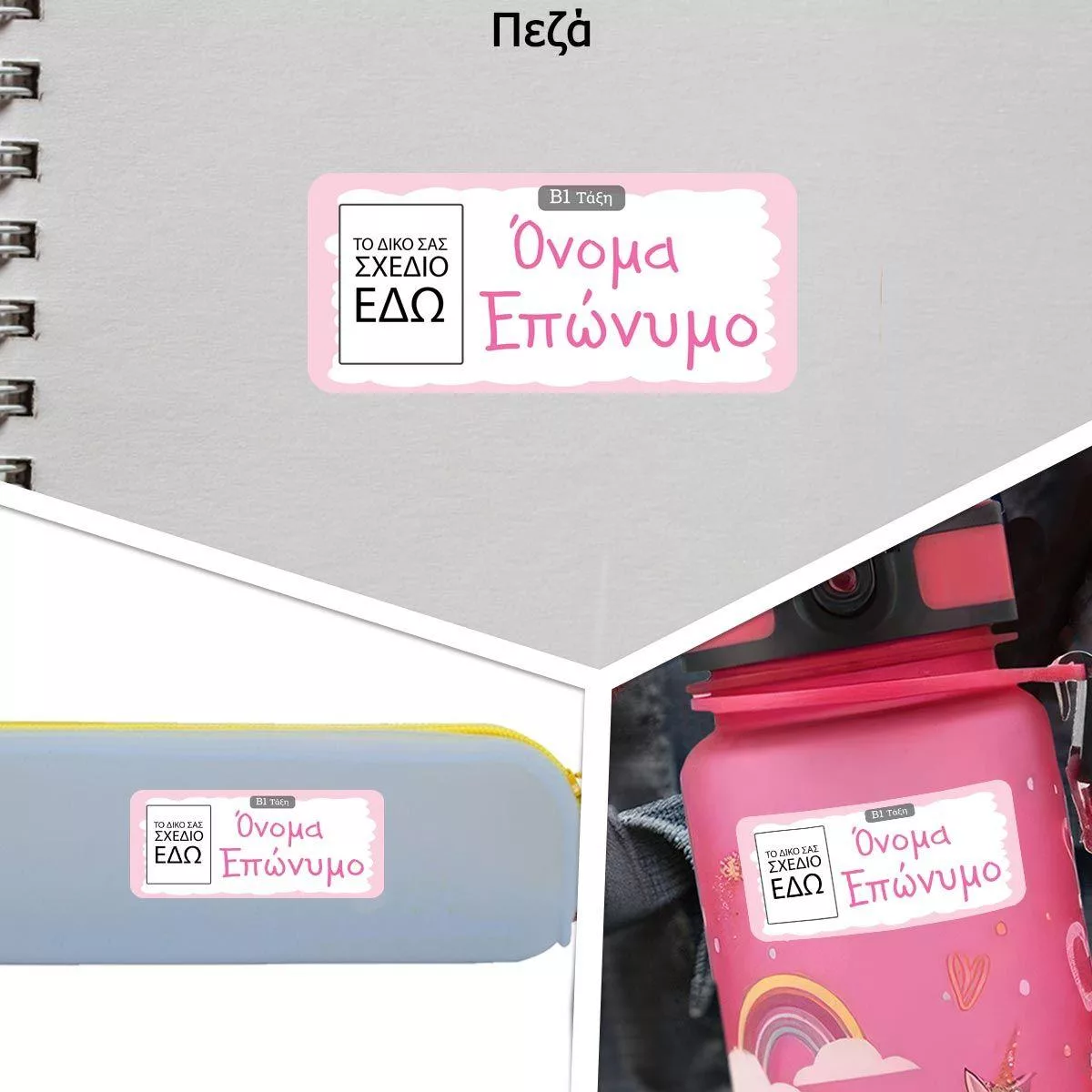 Αυτοκόλλητες ετικέτες για τετράδια, τσάντες, οποιαδήποτε λεία καθαρή επιφάνεια.