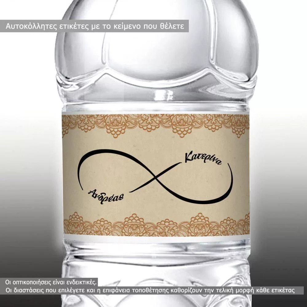 Άπειρο αυτοκόλλητη ετικέτα με τα ονόματα του ζευγαριού
