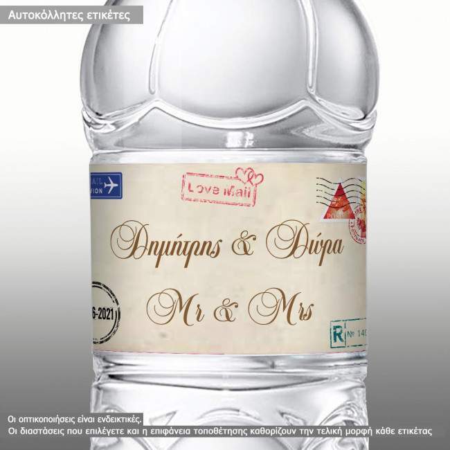 Αυτοκόλλητη ετικέτα Card postal Mr & Mrs με ονόματα του ζευγαριού