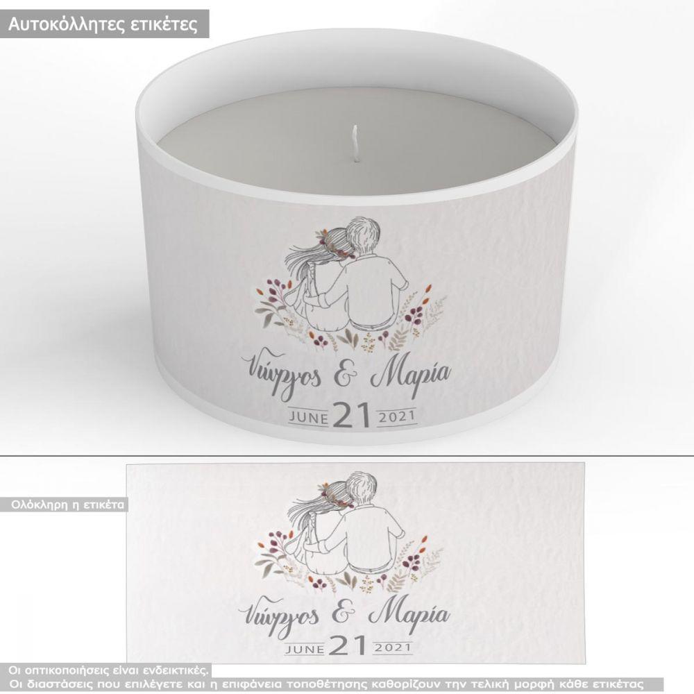 Αυτοκόλλητη ετικέτα Romantic couple invitation , με όνομα και ημερομηνία
