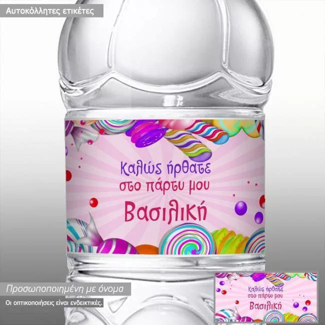 Αυτοκόλλητη ετικέτα Candies party, προσωποποιημένη