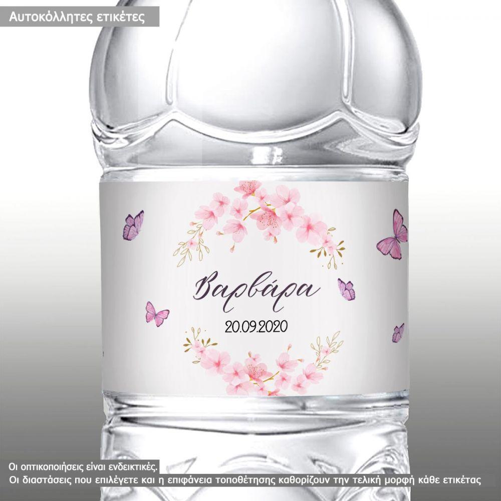 Αυτοκόλλητη ετικέτα Άνθη κερασιάς watercolor, με όνομα και ημερομηνία