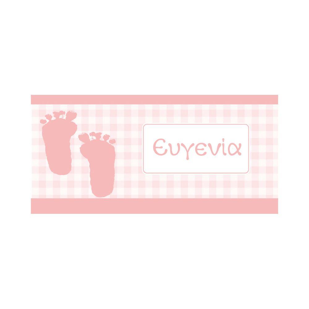 Αυτοκόλλητη ετικέτα Baby foot prints, με όνομα και ημερομηνία