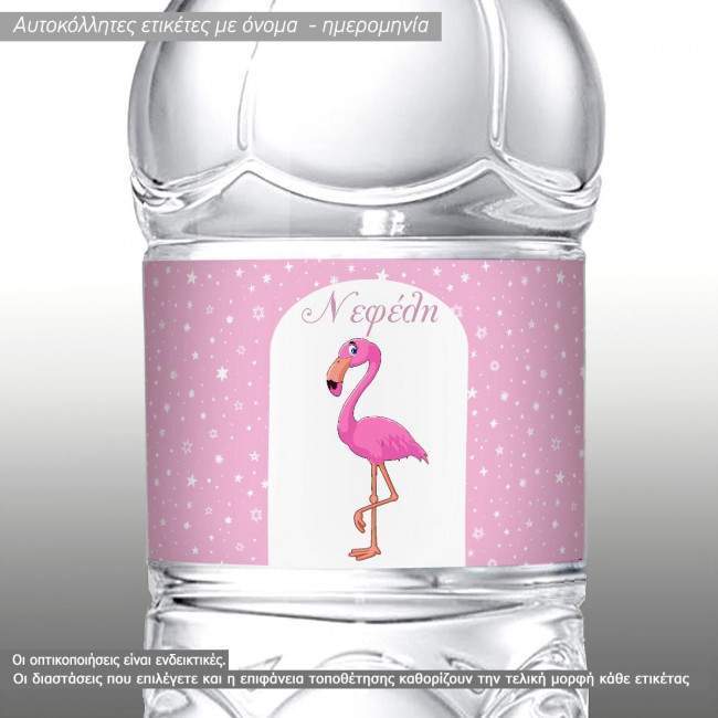 Αυτοκόλλητη ετικέτα Φλαμίνγκο, με όνομα και ημερομηνία