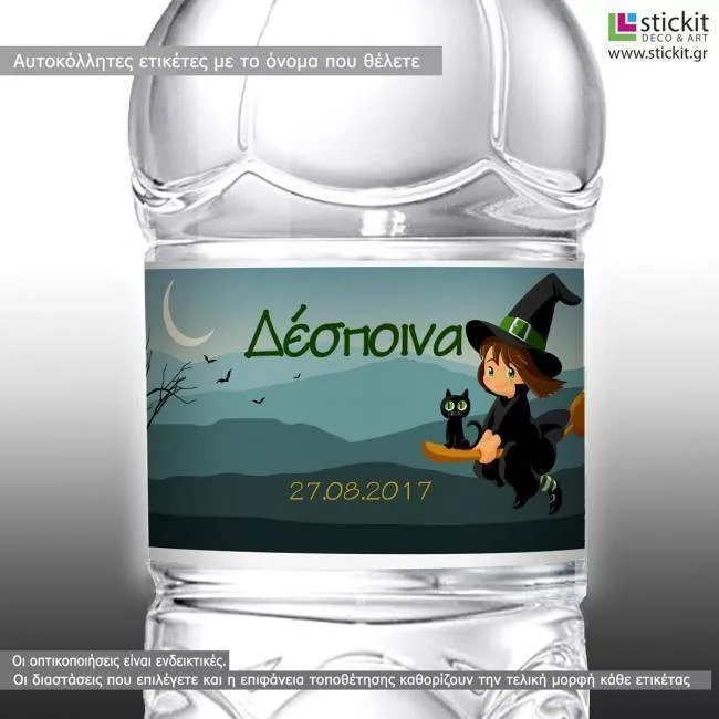 Αυτοκόλλητη ετικέτα Γλυκιά μαγισσούλα, με όνομα και ημερομηνία