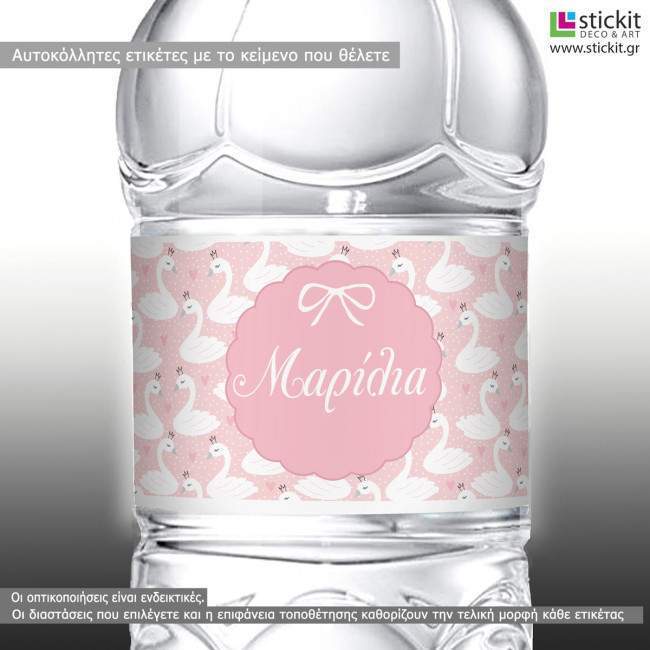 Αυτοκόλλητη ετικέτα Κύκνοι, με όνομα και ημερομηνία