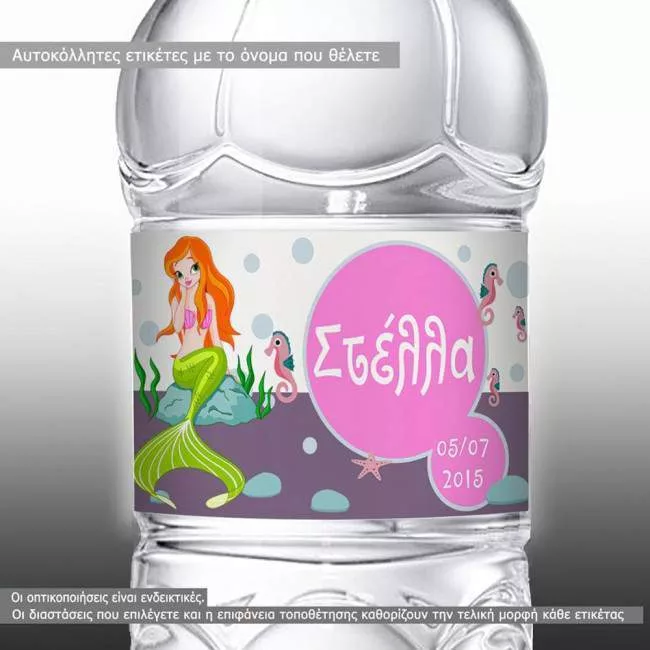Αυτοκόλλητη ετικέτα Κομψή γοργόνα, με όνομα και ημερομηνία