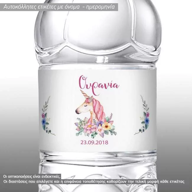 Αυτοκόλλητη ετικέτα Μονόκερος watercolor, με όνομα και ημερομηνία