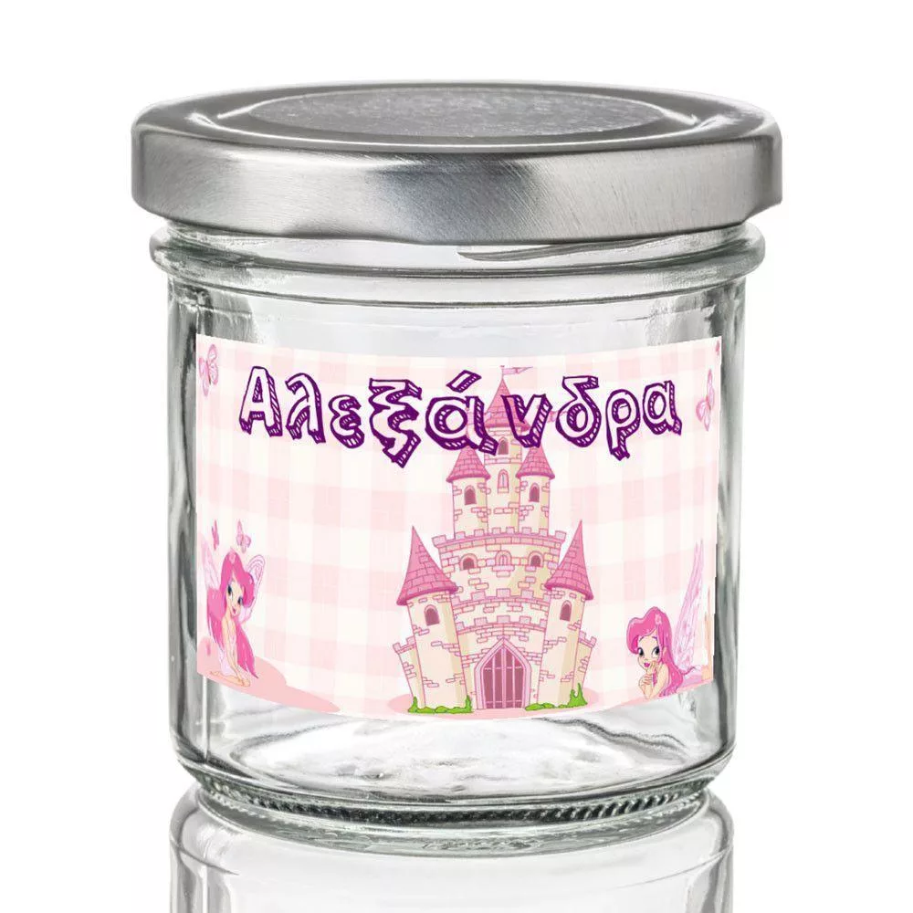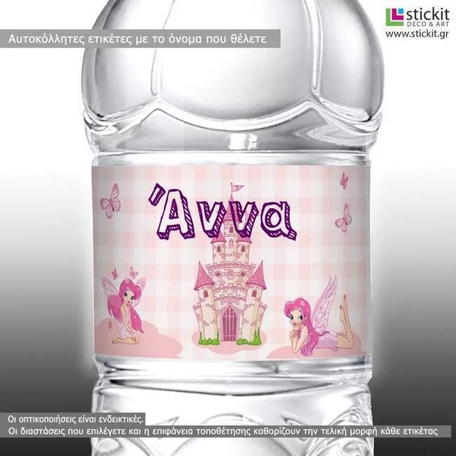 Αυτοκόλλητη ετικέτα Νεράιδες και κάστρο, με όνομα και ημερομηνία