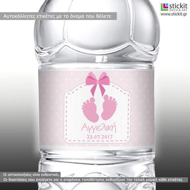 Αυτοκόλλητη ετικέτα Πατουσάκια με κορδέλα, με όνομα και ημερομηνία