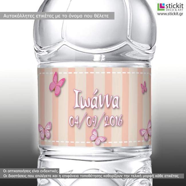 Αυτοκόλλητη ετικέτα Πεταλούδες και ρίγες, με όνομα και ημερομηνία