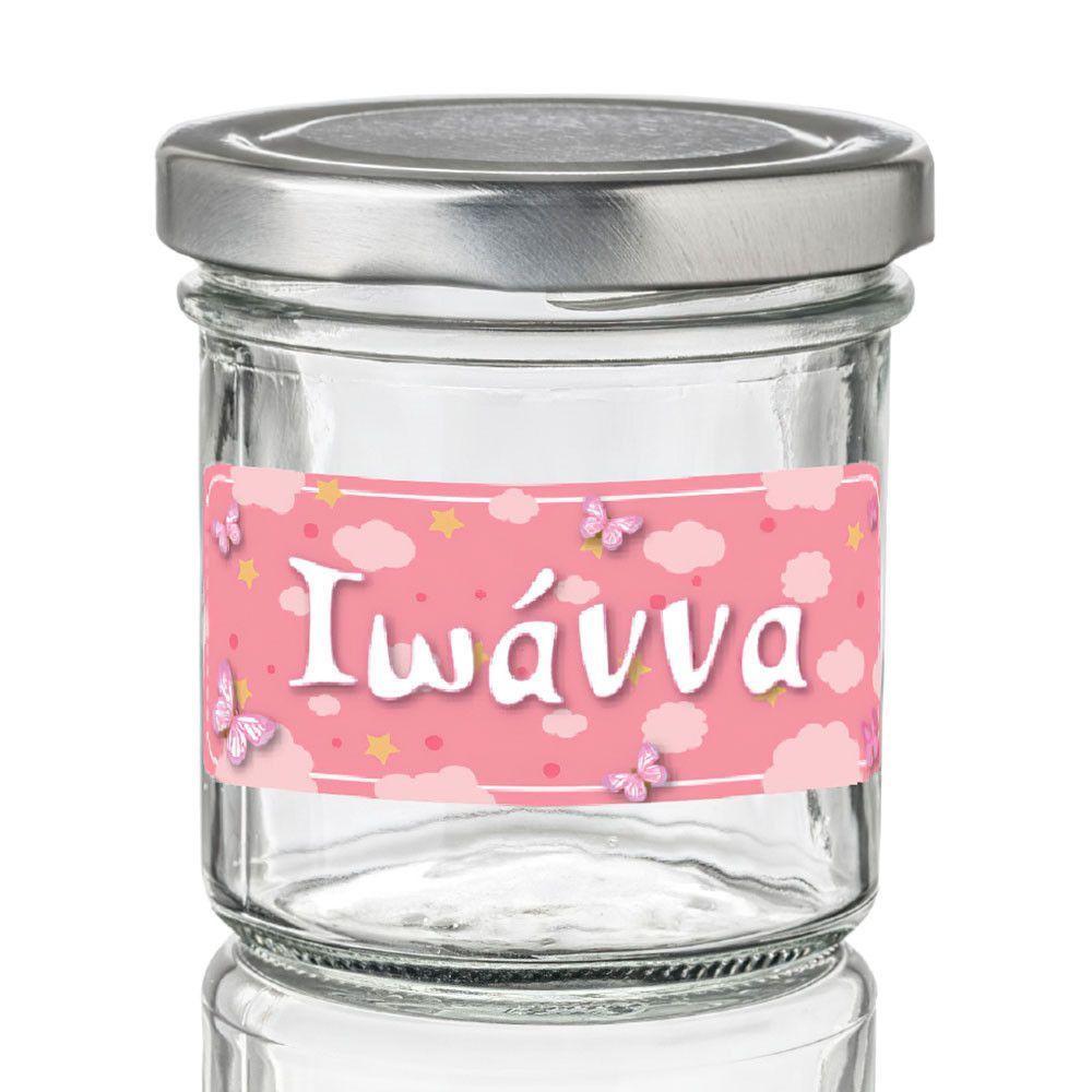 Αυτοκόλλητη ετικέτα Pink sky and butterflies, με όνομα και ημερομηνία