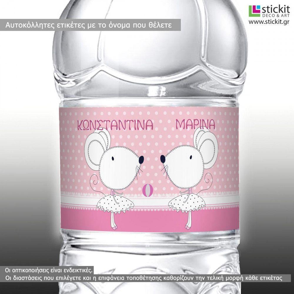 Αυτοκόλλητη ετικέτα Ποντικίνες, με όνομα και ημερομηνία
