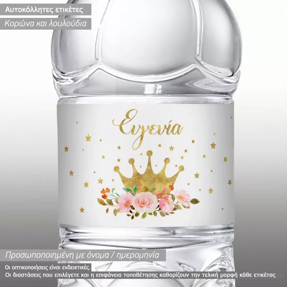 Αυτοκόλλητη ετικέτα Χρυσή κορώνα με τριαντάφυλλα, προσωποποιημένη