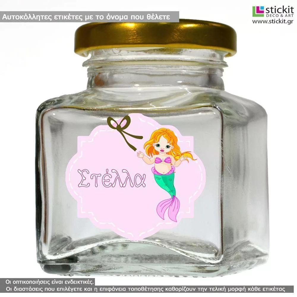 Αυτοκόλλητη ετικέτα Γοργόνα, με όνομα και ημερομηνία