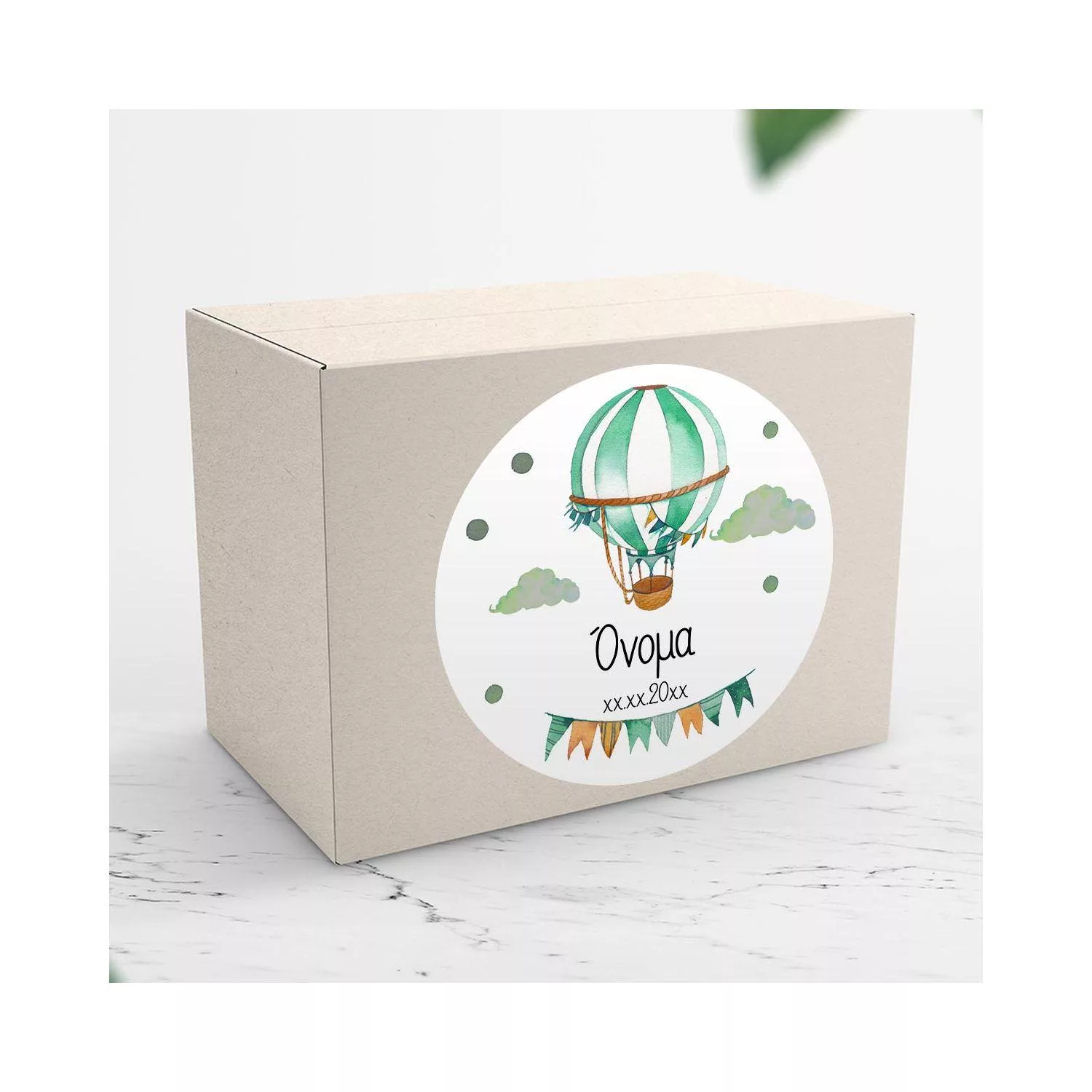 Αυτοκόλλητη ετικέτα, Αερόστατο watercolor με όνομα, πράσινο