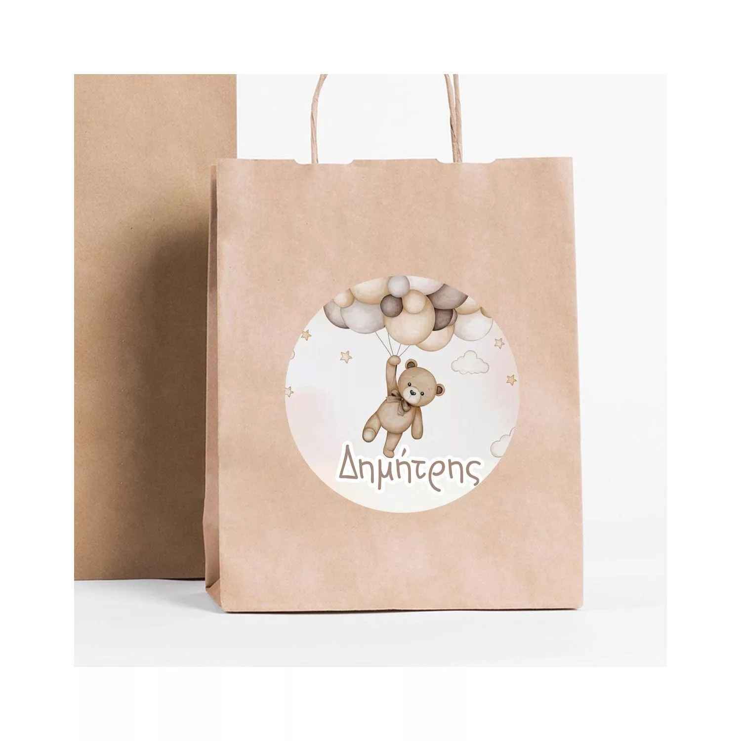 Αυτοκόλλητη ετικέτα Αρκουδάκι με μπαλόνια, νοσταλγικό καφέ