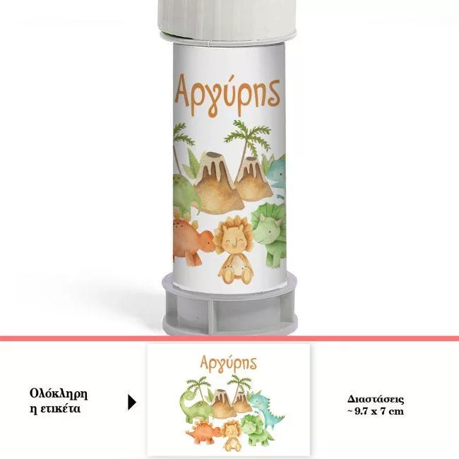 Δημιουργήστε ένα παραμυθένιο σκηνικό γεμάτο χαρά με τις προσωποποιημένες ετικέτες Baby Dinos. Το γλυκό σχέδιο με μικρούς δεινόσαυρους, ηφαίστεια και φοίνικες ζωντανεύει τη φαντασία, κάνοντας κάθε βάφτιση, γενέθλια ή παιδικό πάρτι μια αξέχαστη περιπέτεια. Η δυνατότητα να προσθέσετε το όνομα του παιδιού μετατρέπει κάθε στοιχείο σε προσωπικό ενθύμιο, προσδίδοντας ζεστασιά και μοναδικότητα στη γιορτή.