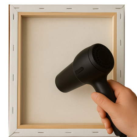 Οι ζάρες, τα βαθουλώματα και οι μικρές παραμορφώσεις στην επιφάνεια ενός τεντωμένου καμβά είναι συχνό φαινόμενο, ιδιαίτερα μετά από μεταφορά, αποθήκευση ή αλλαγές στο περιβάλλον. Μία από τις πιο διαδεδομένες και απλές μεθόδους αντιμετώπισης είναι η εφαρμογή νερού στην πίσω πλευρά του καμβά, ώστε να χαλαρώσουν οι ίνες. Όταν γίνει σωστά, η μέθοδος αυτή μπορεί να βελτιώσει αισθητά την τάση της επιφάνειας χωρίς να απαιτείται επανατέντωμα.