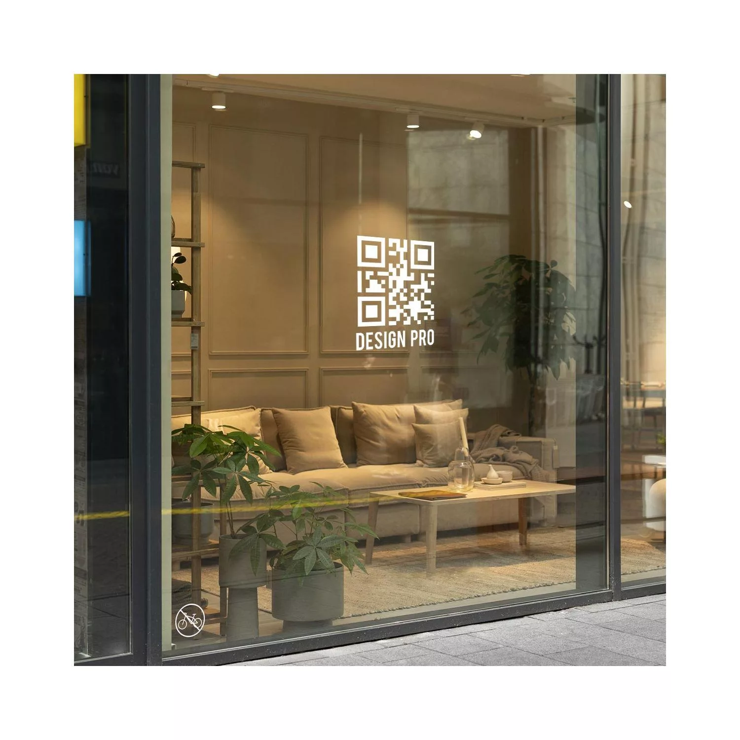 Αυτοκόλλητο βιτρίνας QR code με λογότυπο, λευκό