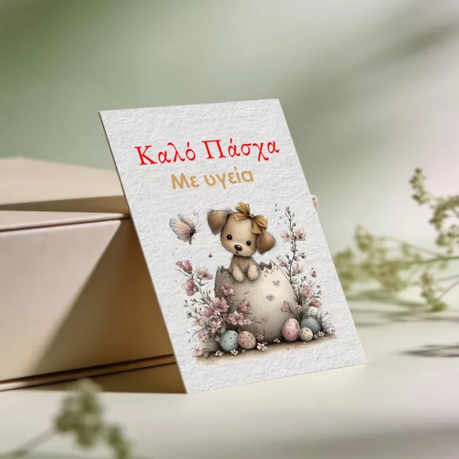 Πασχαλινά καρτελάκια Puppy Egg , Καλό Πάσχα. Αναβαθμίστε την εμπειρία των πελατών σας, πέιτε τους ευχαριστώ, με στυλ.