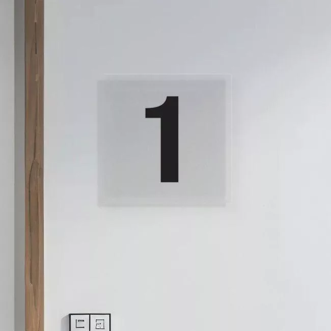 Πινακίδα σε plexiglass τετράγωνη. με μαύρο 3d αριθμό.
