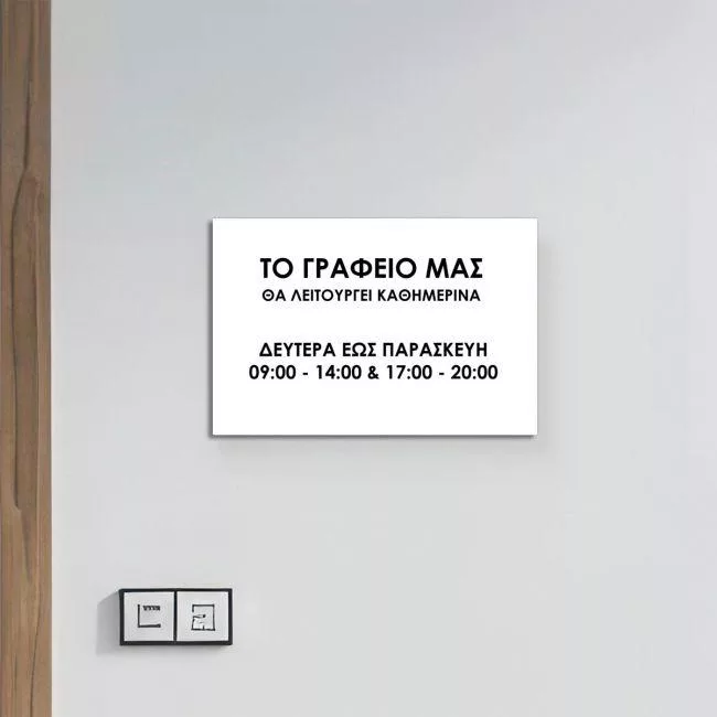 Πινακίδα plexiglass, ωράριο