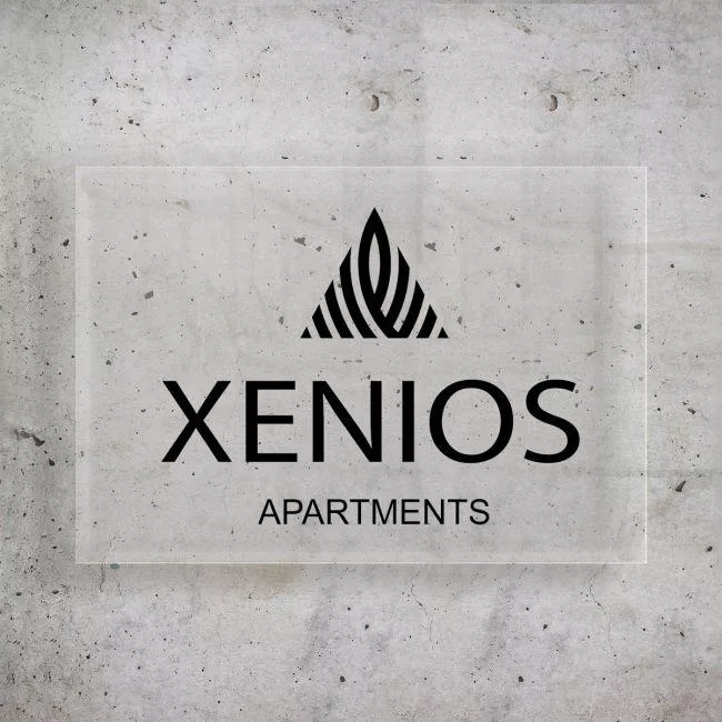 Πινακίδα διάφανο plexiglass κείμενο λογότυπο κοπτικό βινύλιο.