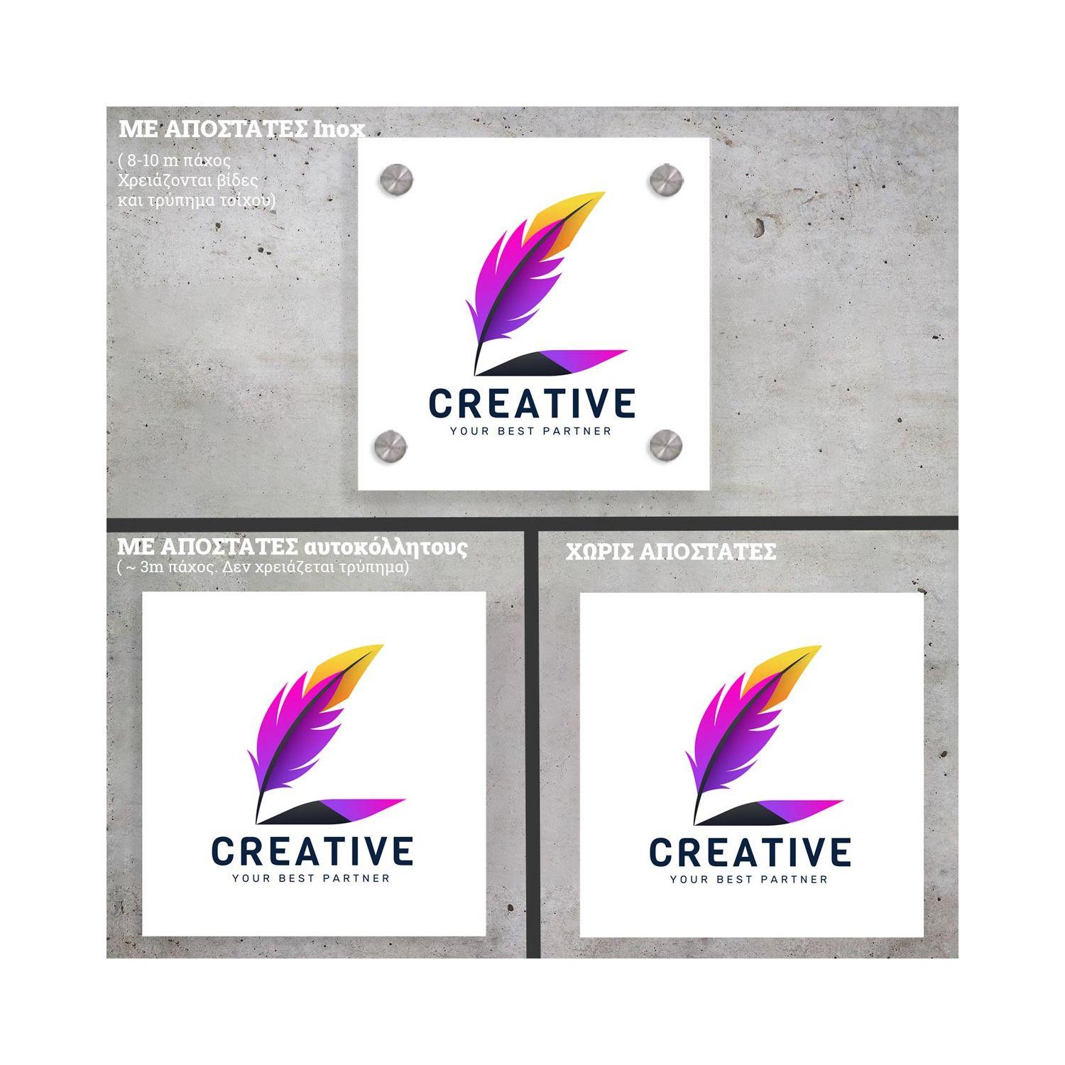 Πινακίδα σε plexiglass τετράγωνη. εκτυπωμένο λογότυπο*.